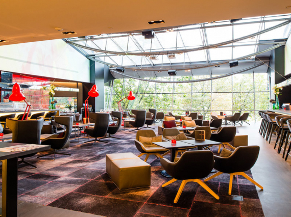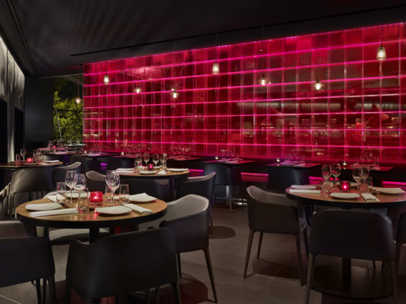 As soon as you enter their dining space, you will be awestruck by their striking, somewhat futuristic designs: the sharp neon red walls will immediately capture your attention along with a video wall displaying artistic projections. It makes stunning use of natural lighting with exceptional views of the Thames even though you are not particularly high up in the London skyline. For those who always struggle to read the menus, maybe a seat by their oversized desk lamps is in order.