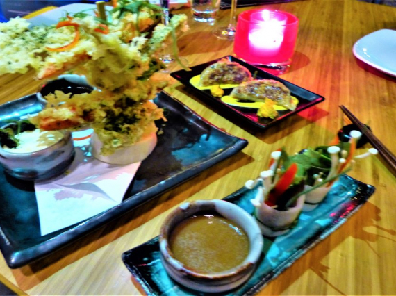 The vegetable gyozas were packed with much more variation in flavours than what you would typically expect with an interesting combination with the sugariness from the sweet potato puree contrasting with the heat from the aji amarillo. Whilst the daikon rolls will keep your GP extremely pleased with healthy doses of red peppers, chives and mushrooms to accompany the main act.
