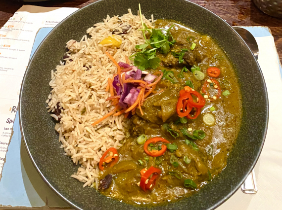 The star of the evening was the Goat Curry, a dish that showcased Turtle Bay’s commitment to quality and authenticity. The slow-cooked goat, raised in Dorset and marinated in aromatic spices, green seasoning, and scotch bonnet, was a testament to the restaurant’s dedication to using fresh, high-quality ingredients. Each bite was a journey through Caribbean flavors, a symphony of spices that left us craving more.