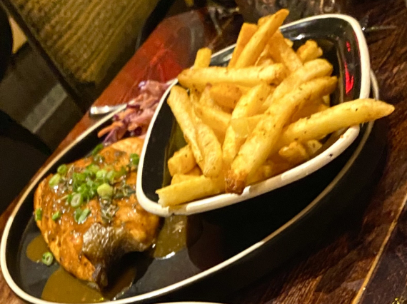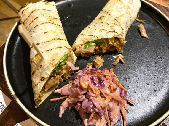 To complement our main dishes, we indulged in side orders of Spiced Fries and the Chicken Roti Wrap. The Spiced Fries were the perfect accompaniment, adding an extra layer of flavor and crunch to the meal. The Chicken Roti Wrap, filled with succulent pulled jerk chicken, smashed avocado, pickled veg, crunchy lettuce, and mild jerk mayo, was a festival of textures and tastes wrapped in a warm embrace.